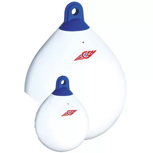 Birnenförmiger aufblasbarer Fender, orange Farbe. Kann auch als Boje verwendet werden. Größe: 550 mm x 730 mm