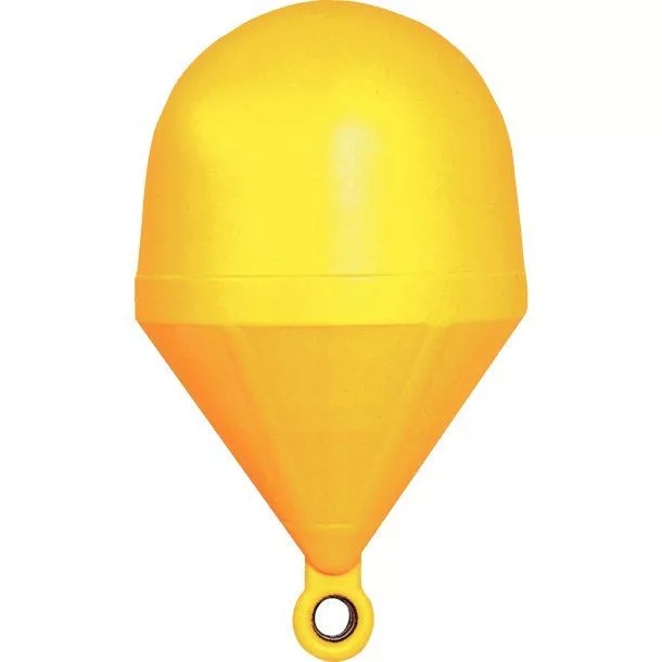 Längliche halbkugelförmige Markierungsboje aus starrem Kunststoff, mit Haken, in Gelb.