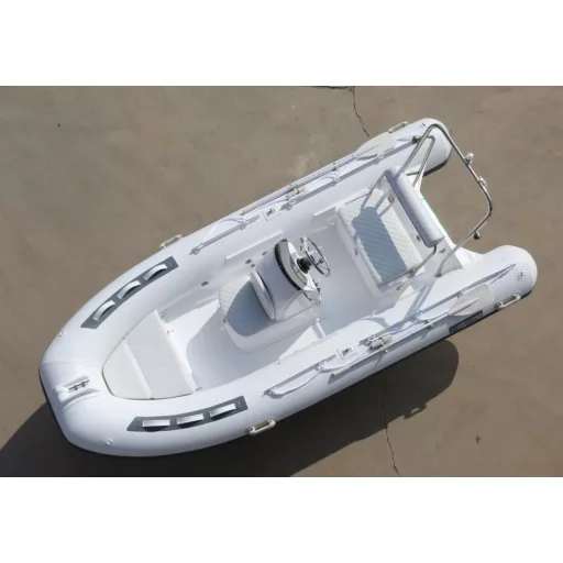 - Standardzubehör: Ruder, Fußpumpe, Reparaturset, 2 Aluminiumsitze, gepolsterter Vordersitz mit Staufach, Ankerschale aus Glasfaser,