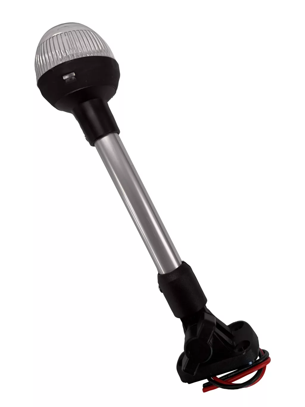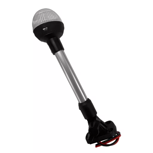 Runde Leuchte mit weißem Licht, montiert auf einem neigbaren Stahlstab, mit 360-Grad-Sichtbarkeit, in einem schwarzen Kunststoffgehäuse. 12V / 10W,