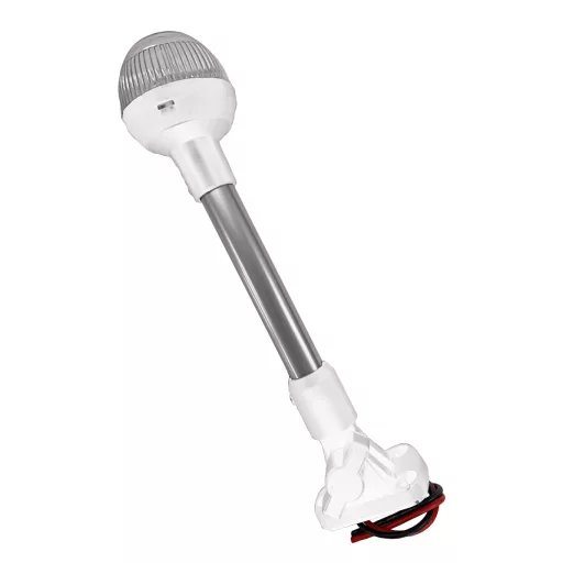 Kreisförmige Leuchte mit weißem Licht, montiert auf einem neigbaren Edelstahlstab, mit 360-Grad-Sichtbarkeit, in einem weißen Kunststoffgehäuse. 12V / 10W,