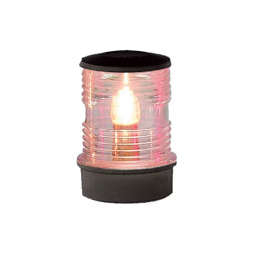 Positionsanzeige weiße Mastleuchte im schwarzen Kunststoffgehäuse. 12 Volt, 10 Watt Leistung, 360-Grad-Leuchtweite. Kann auf einer horizontalen Basis montiert werden.