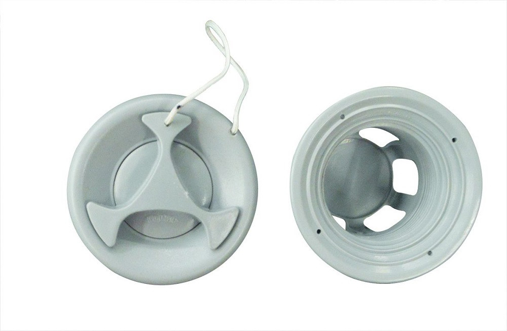 Klassisches, einschraubbares Schlauchbootventil in Standardgröße. Die Kappe kann durch Drehen um 90 Grad geöffnet werden. Außengröße: 63 mm, Farbe grau, für 45 mm Ventilöffnung. Typ: BRAVO 2001
