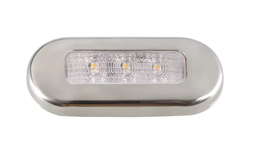 LED-es kabinfény, rozsdamentes acél kerettel. Belső processzorral rendelkezik, amely lefelé irányítja a fényt, és nem érintkezik közvetlenül a szemmel. Teljesen vízálló IP65-ös besorolású, mivel az áramköri lapok epoxi gyantával vannak lezárva. A burkolat színe rozsdamentes acél.